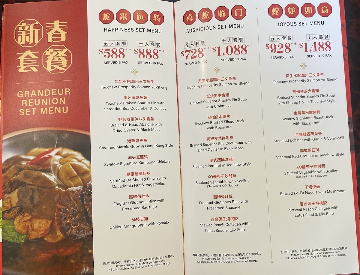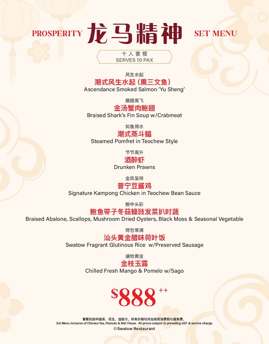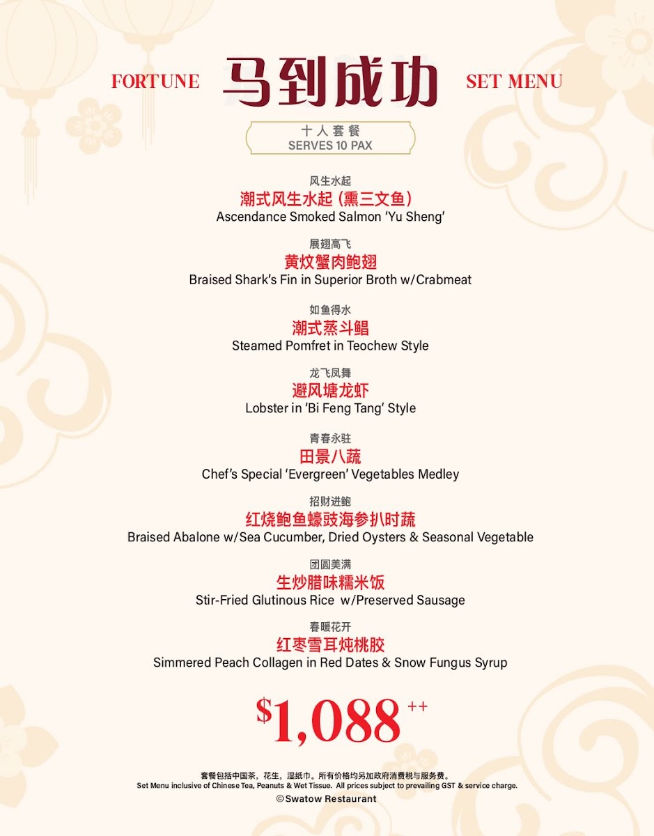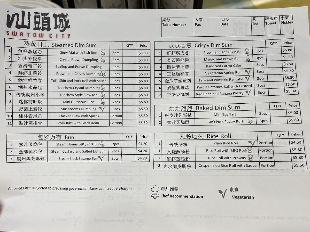 From a reviewer’s perspective, the menu at Swatow City offers a well-rounded showcase of Teochew cuisine, highlighted by thoughtfully curated set options like the Happiness Set Menu For 2 Pax, Joyful Set Menu For 2 Pax, and larger group selections such as the Happiness Set Menu For 4 Pax and Joyful Set Menu For 4 Pax, which provide convenient and value-driven dining experiences. The à la carte offerings are equally impressive, with signature dishes such as Roasted Duck With Black Truffle (Half) and Swatow Fried Cray Fish With Omelet And Leeks standing out among the Teochew specialties, alongside classics like Teochew Prawn Roll and Teochew Chilled Jellied Pork Knuckle. The soup selection, including Teochew Style Braised Shark’s Fin Soup With Crab Meat and Double Boiled Chicken Soup And Dried Scallop With Matsutake Mushroom, reflects a strong emphasis on traditional flavors and premium ingredients. Seafood lovers will appreciate dishes like Fried Deshelled Prawn With Wasabi Mayonnaise And Fruits and Sautéed Scallop And Fresh Lily Bulbs With Macadamia Nuts, while hearty meat options such as Pan Fried Pork Chop With Home Made Sesame Sauce and Sweet And Sour Pork With Pineapple add balance to the menu. Complementing these are comforting staples like Braised Ee Fu Noodle With Mushrooms and Fried Pearl Rice With Scallop And Prawn, as well as classic desserts including Teochew Taro Paste With Pumpkin And Gingko Nuts and Chilled Fresh Mango Sago With Pomelo. Overall, the menu feels extensive yet cohesive, catering to both traditional tastes and modern palates, making it a satisfying culinary destination.